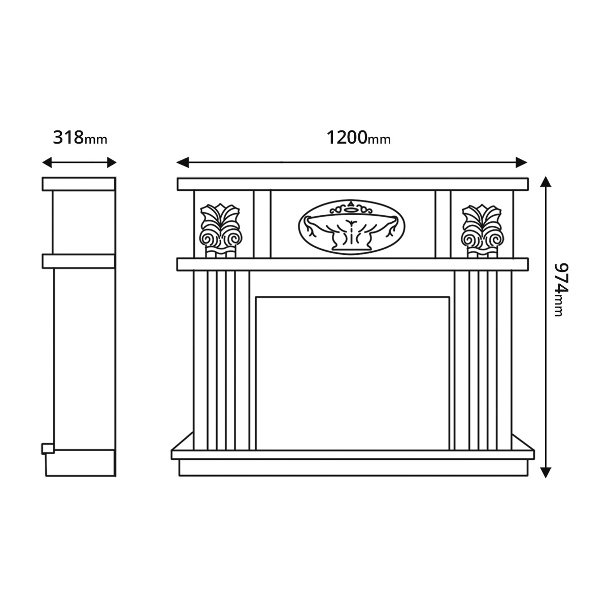 Portal "Promete" is made in a special design with 3D ornaments and unique patterns on the sides. "Prometheus" will perfectly emphasize the design of not only the hearth, but also your home. The product is made of high quality MDF and chipboard materials.