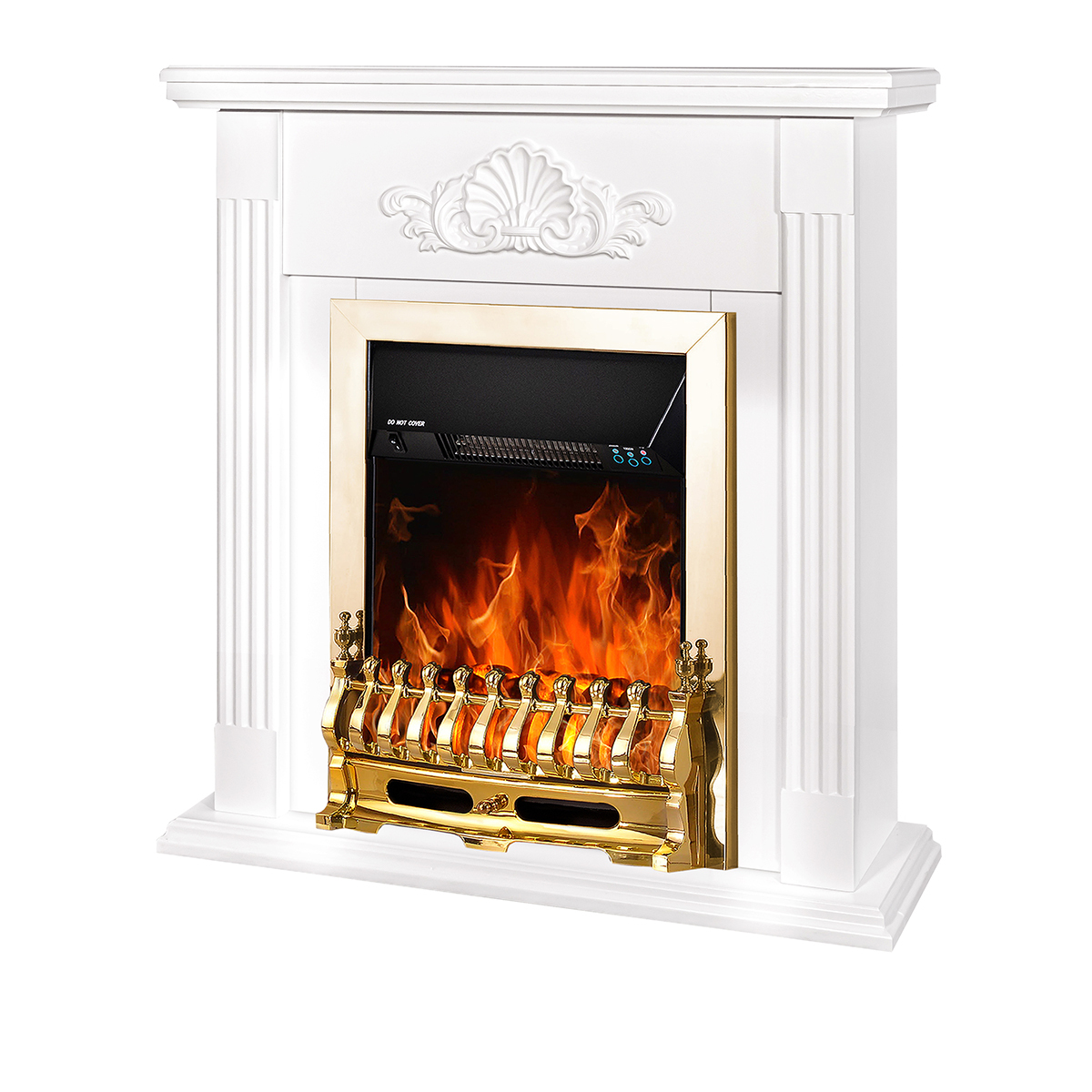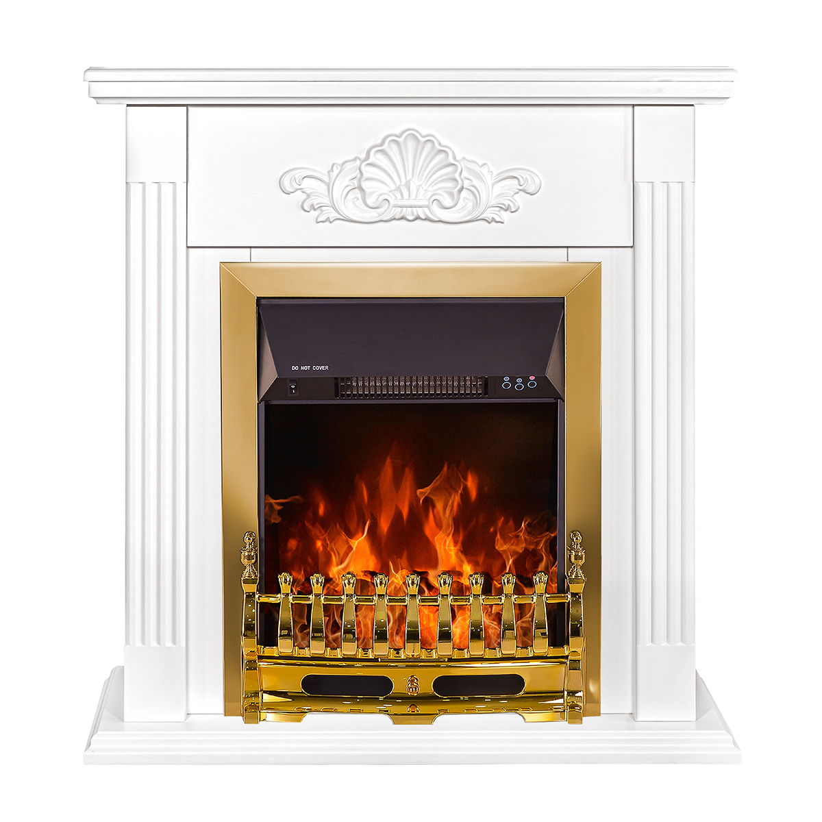 Electric fireplace "Galileo Gold" is made in a light design with a golden fence and frames. The device is capable of operating in 2 modes: in decorative mode and heating mode. In decorative mode, the device creates a cozy atmosphere with a high-quality simulated flame, the brightness of which can be changed using the remote control that comes with the kit. In heating mode, the electric fireplace is able to heat a room of 20m2. Overheating protection is responsible for the safety of the fireplace.