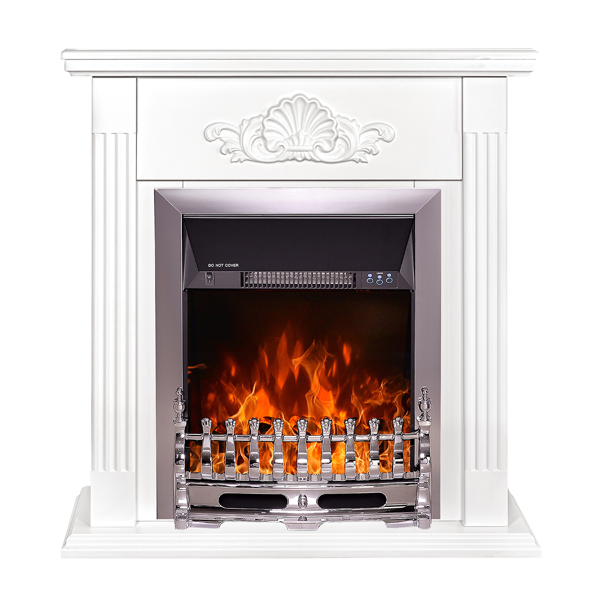 Electric fireplace "Galileo Silver" is made in a light design with a silver fence and frames. The device is capable of operating in 2 modes: in decorative mode and heating mode. In decorative mode, the device creates a cozy atmosphere with a high-quality simulated flame, the brightness of which can be changed using the remote control that comes with the kit. In heating mode, the electric fireplace is able to heat a room of 20m2. Overheating protection is responsible for the safety of the fireplace.