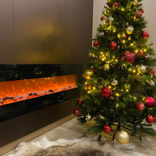 This model is easily attached to the wall, without requiring special skills or additional fasteners, everything you need is included in the kit. The functionality of the electric fireplace allows it to work in two modes: heating mode and decorative mode. The distribution of heat throughout the room is carried out using a silent convector. This model is quite economical, its maximum power is only 1.5 kW. An additional nice option is the LED backlight. Its presence gives the fire maximum credibility.