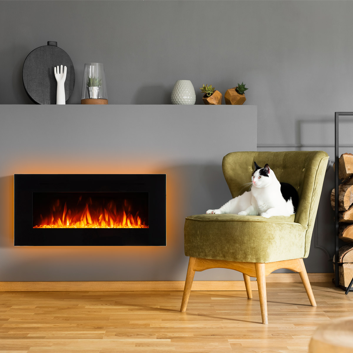 Strona główna Kominki elektryczne Ścienny Elektryczny kominek ścienny Pebble, Art Flame, 508x1067x120 mm, 1500W, 10 kolorów podświetlenia, 5 poziomów intensywności płomienia, Timer
