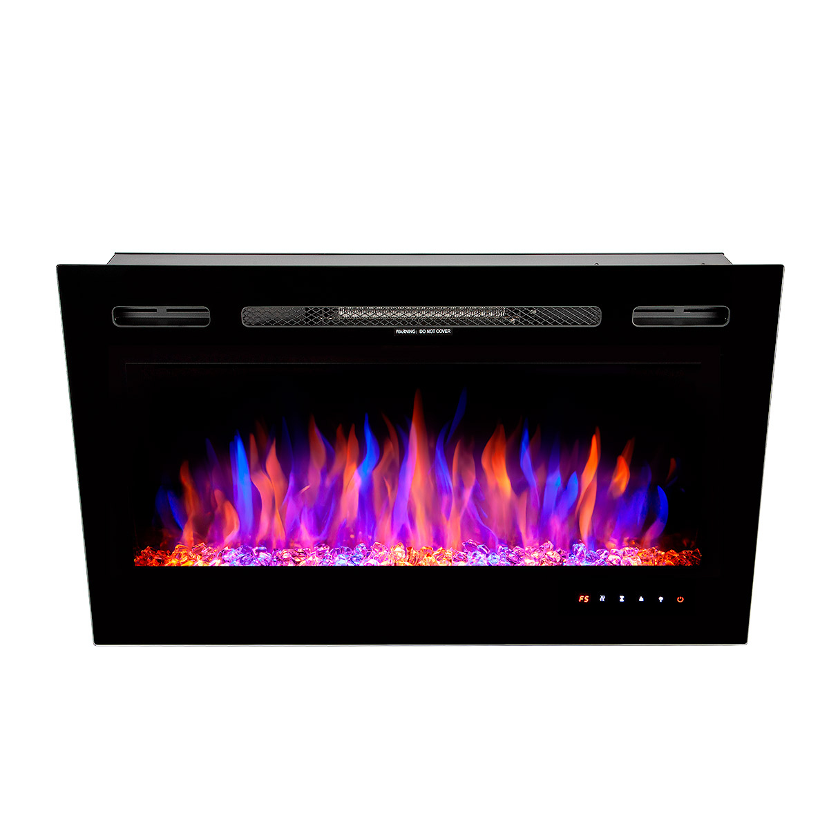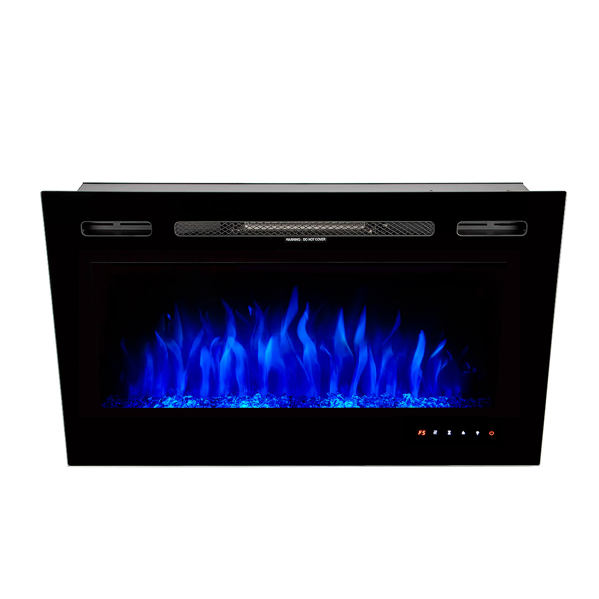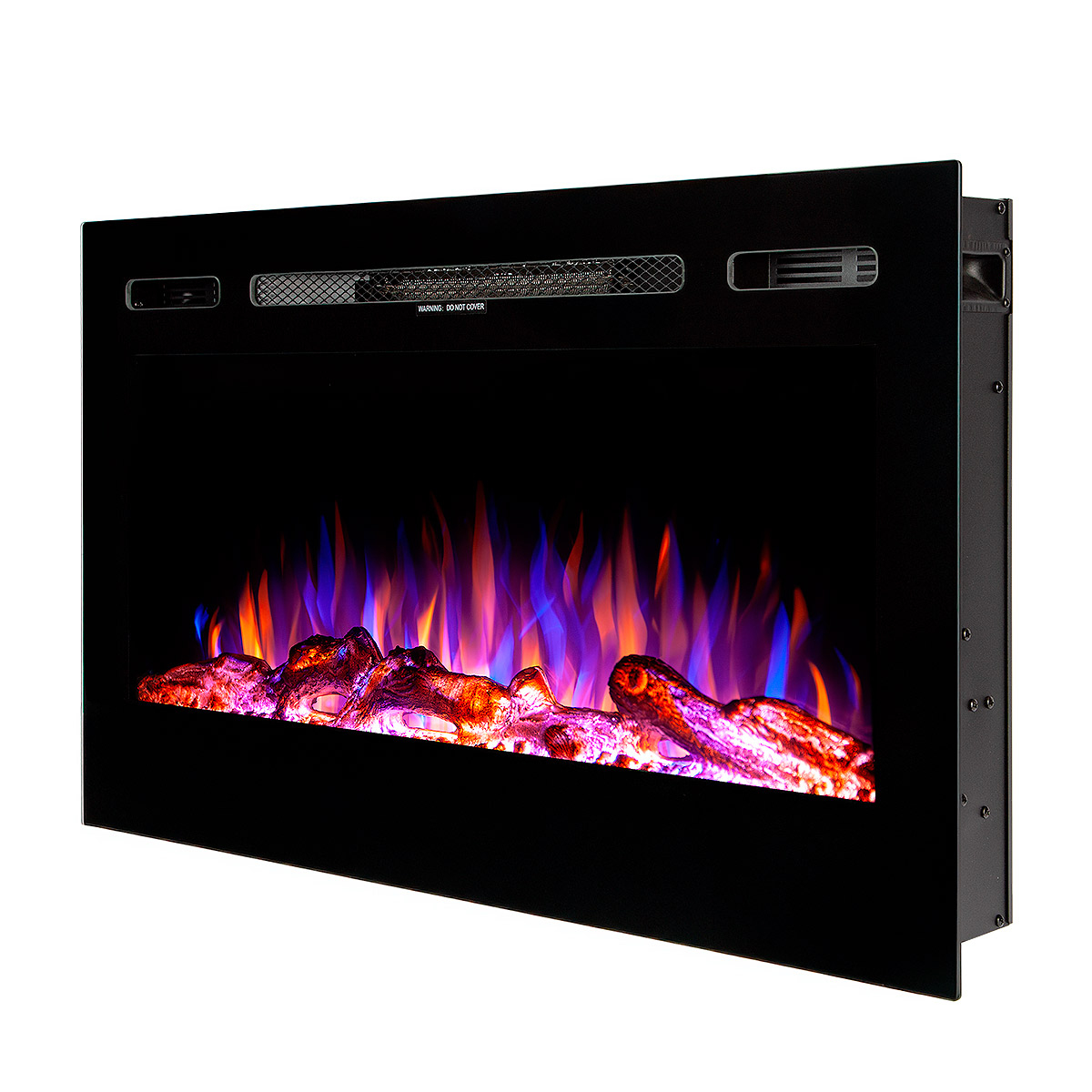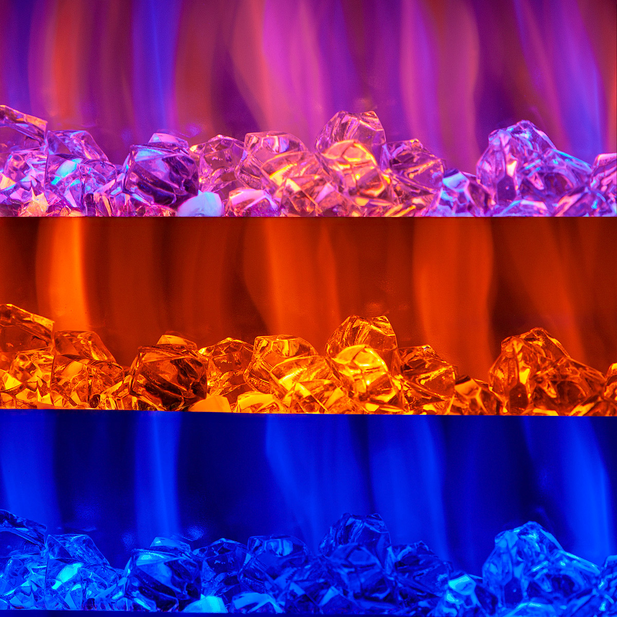 The Adeli electric fireplace offers the possibility to be incorporated or mounted on the wall, according to your wishes. Thanks to LED lighting and economical thermal convectors. The multi-colored flame is set using the control panel or the one at the bottom of the fireplace. The simple exterior design allows it to fit into any desired interior.