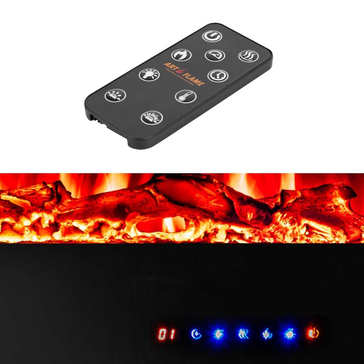 Tryb dekoracyjny z regulacją jasności i koloru płomienia, realistycznym efektem palenia oraz podświetleniem zmieniającym kolory.