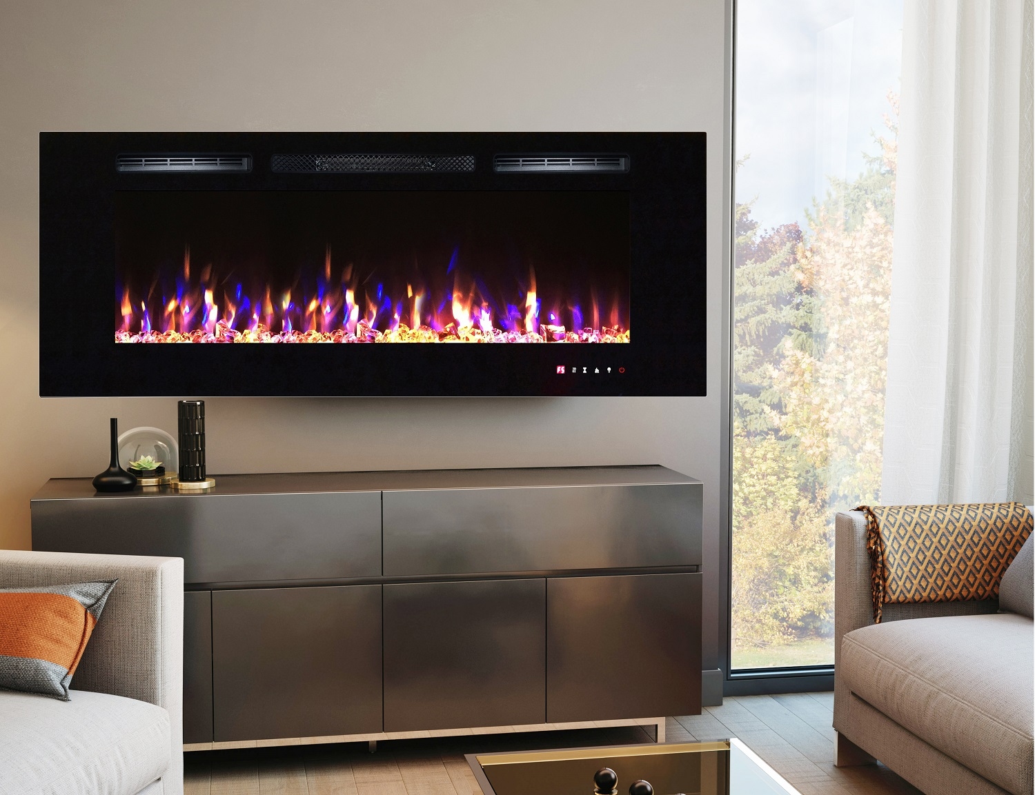 Modern Hercules fireplace, realistic flame effect, which can easily decorate the living room. This model can be placed on the wall or built-in at the request of the customer. The functionality of the fireplace allows you to work in two ways: in heating mode and in decorative mode. The heat is distributed throughout the room with a quiet convector. This model is quite economical, its maximum power is only 1.5 kW. Another great option is LED lighting. The Heracles outfit will keep you warm in cold winters and give you a romantic atmosphere on summer evenings.