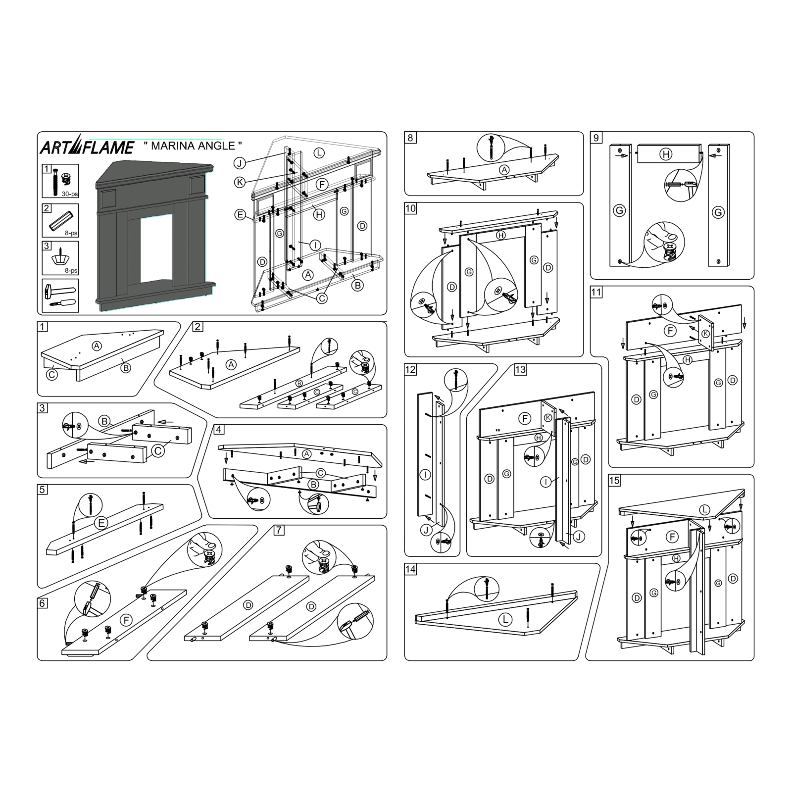 Strona główna Kominki elektryczne z obudową Ekonomiczny Kominek elektryczny narożny Marina & Cristina, Art Flame, 1000x1000x500 mm, 2000W, 2 stopnie grzania, 5 poziomów intensywności płomienia, Timer
