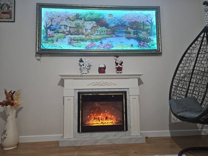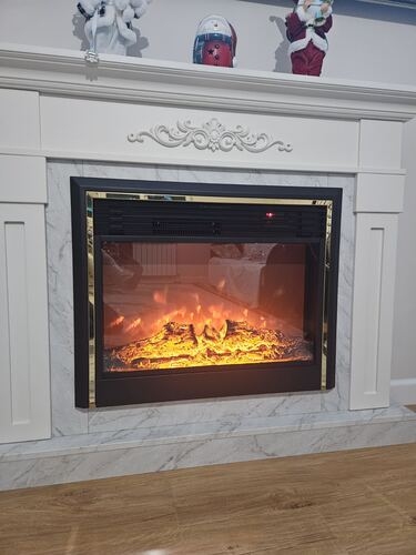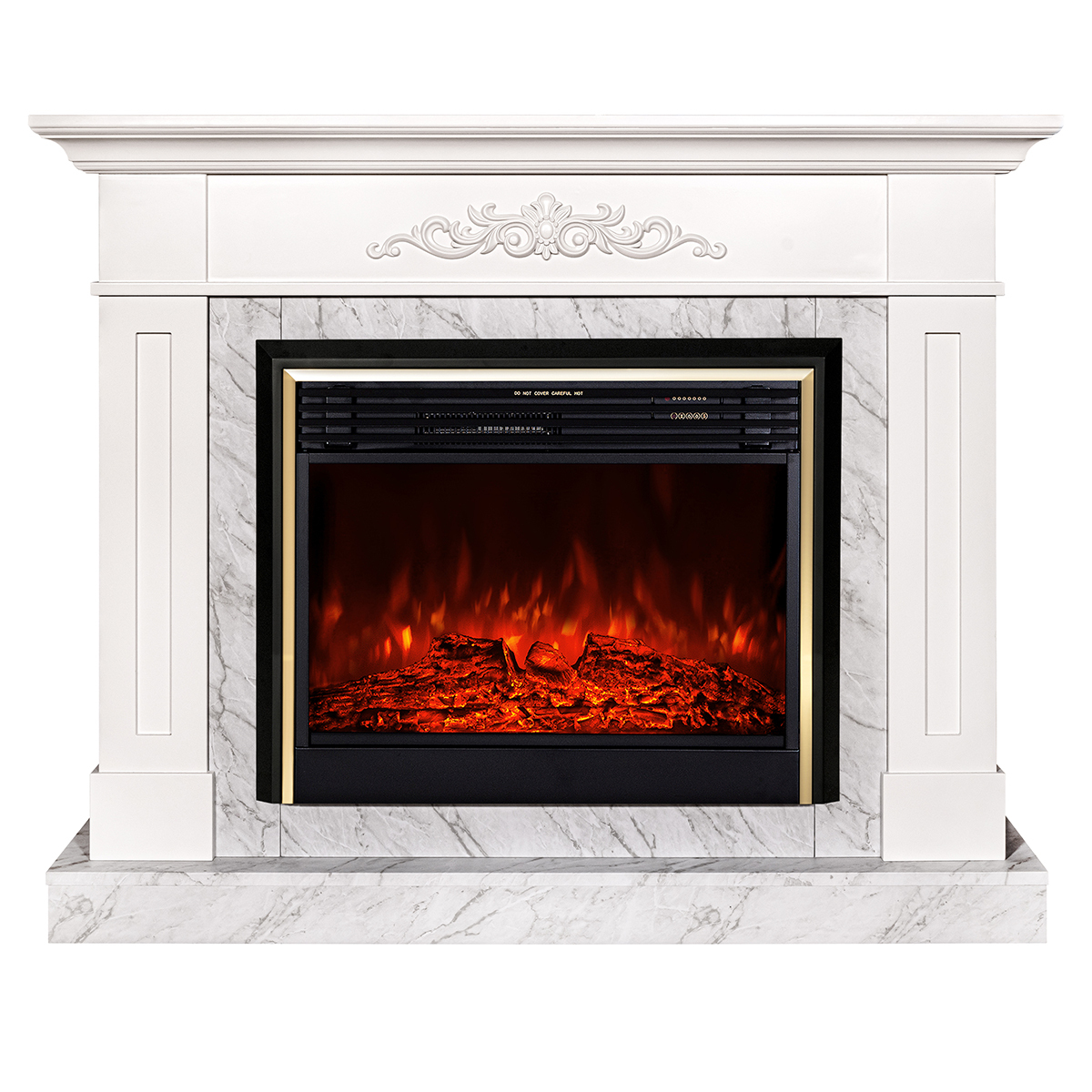 Electric fireplace "Richie" is a device made in a dark design with thin gold inserts. In decorative mode, the electric fireplace creates a believable flame simulation not only with the help of visual decoration, but also due to the new sound simulation technology. In heating mode, the device is able to heat a room of 20m2. Overheating protection is responsible for the safety of the fireplace. And also included with the fireplace set is a remote control with which you can adjust the brightness of the flame, the sound level and switch heating modes.