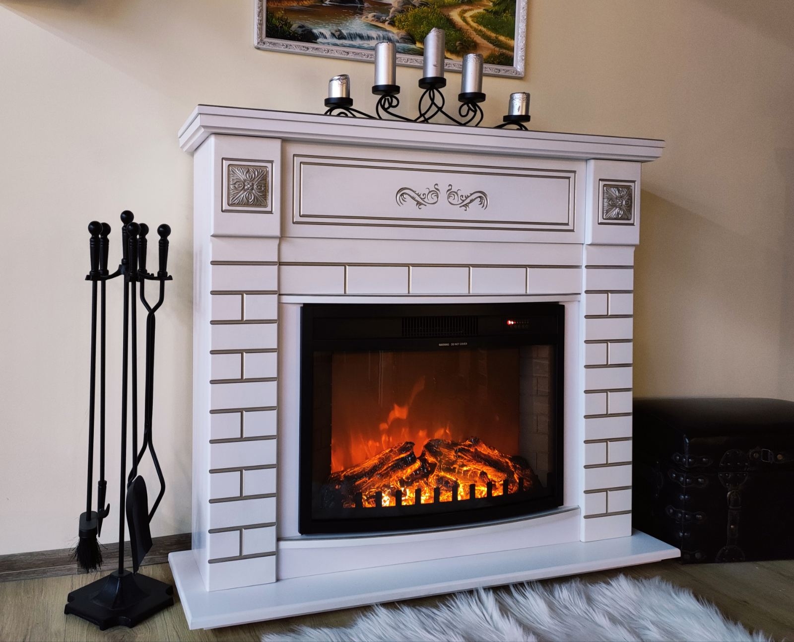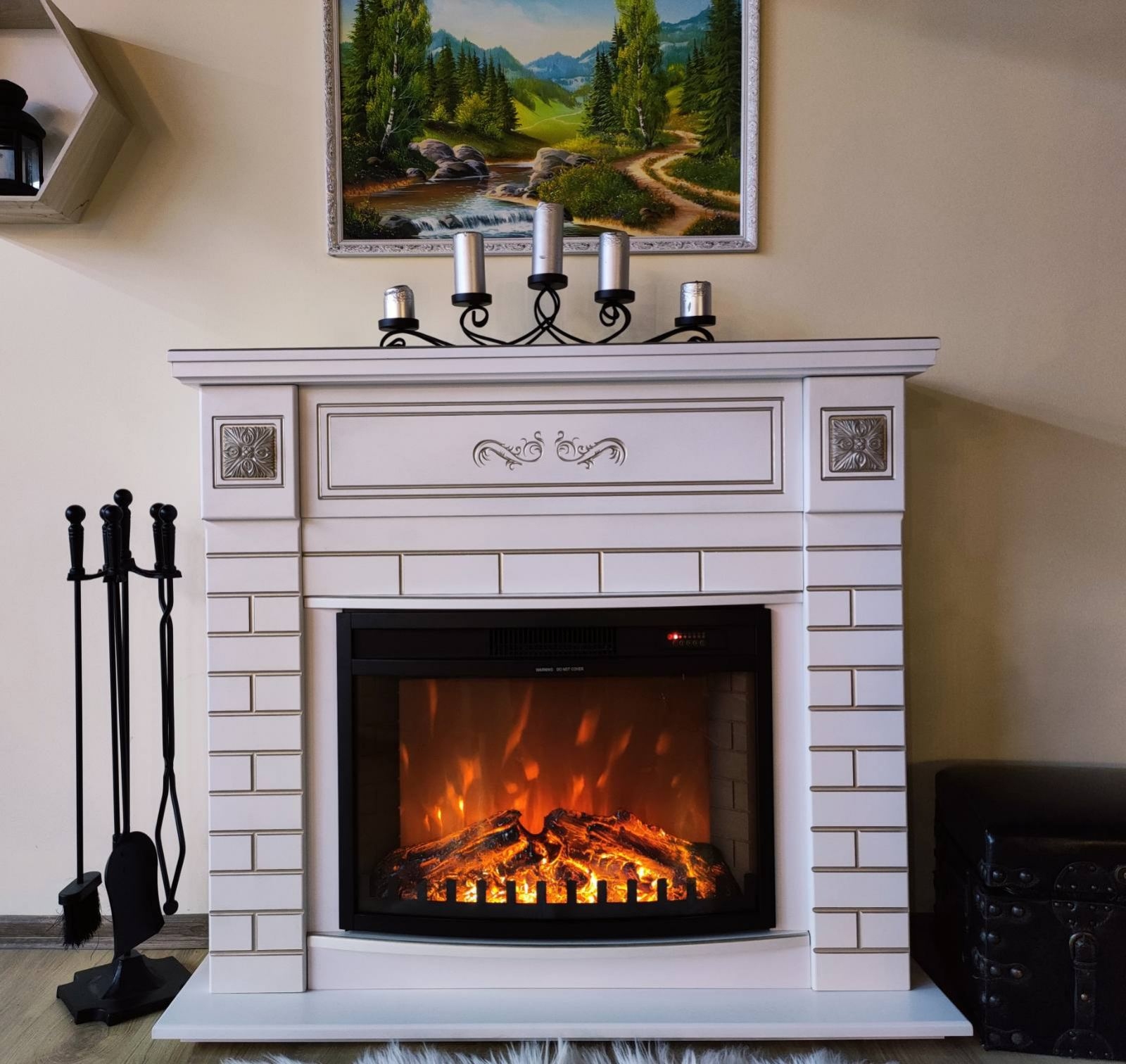 The fireplaces sets from Art Flame offer a high quality design, of the widest range in Romania. Fireplace sets do not require special installation skills, as they are delivered assembled and ready for use. Orion & Zakinthos fireplace set will be the jewelery of your home. The Orion portal combines classic and modern styles perfectly. Made in white, with a silver patina, with an elegant masonry with special elements. High-quality imitation of the flame of the Zakinthos electric heater will give you a sense of comfort. The functionality of this model allows you to use the simulated flame separately from the heating mode, and contains remote control with automatic timer function.