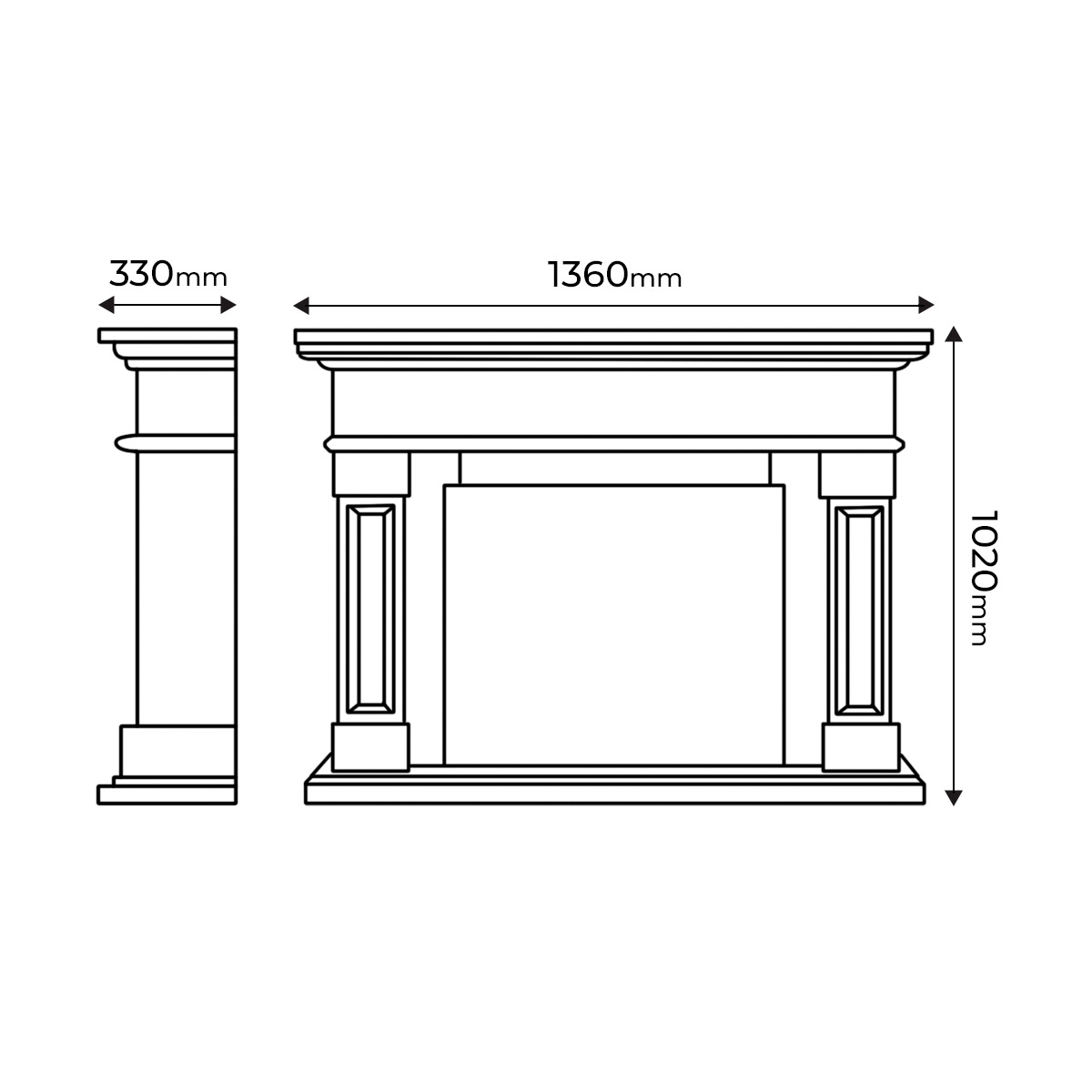 The electric fireplace "Carmen" is made in a standard form with a volumetric hearth and 3D fires. The functionality of the device consists of 2 modes: decorative mode and heating mode. In decorative mode, the electric fireplace creates the effect of a burning fire, the brightness of which can be adjusted using the remote control that comes with the kit. In heating mode, the device is capable of heating a room of 20 m2.