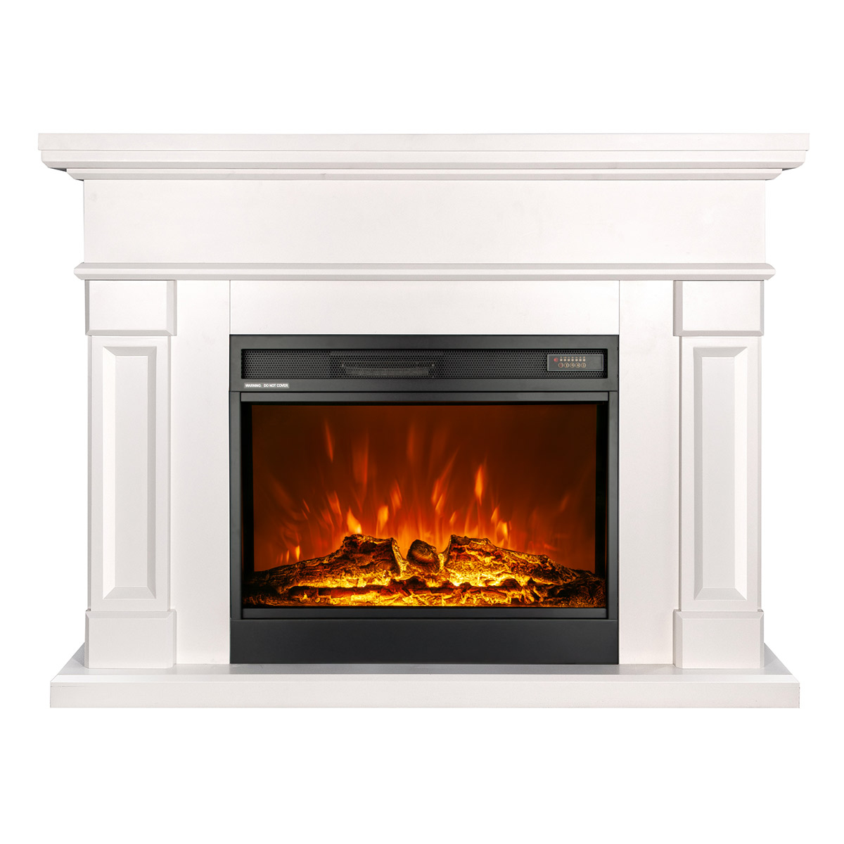 Electric fireplace "Mirabela" is made in a standard form with a hearth and 3D fires. The functionality of the device consists of 2 modes: decorative mode and heating mode. In decorative mode, the electric fireplace creates the effect of a burning fire, the brightness of which can be adjusted using the remote control that comes with the kit. In heating mode, the device is capable of heating a room of 20 m2. Overheating protection is responsible for the safety of the fireplace.
