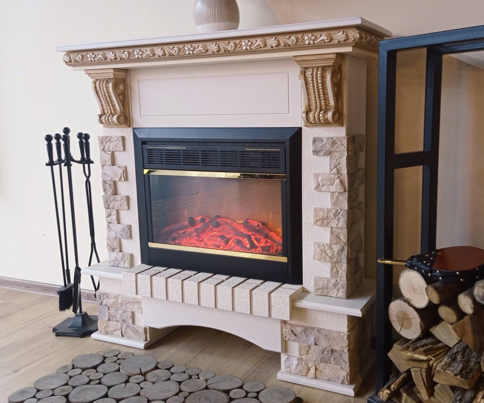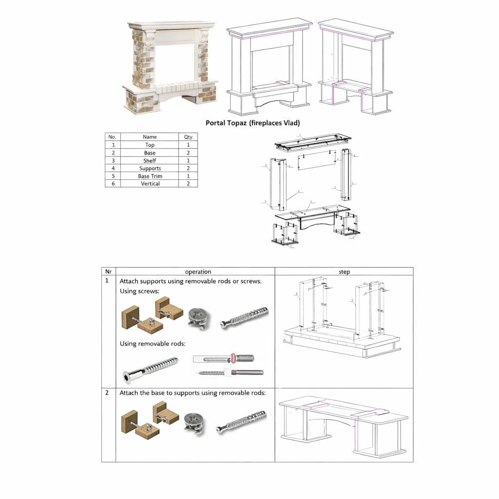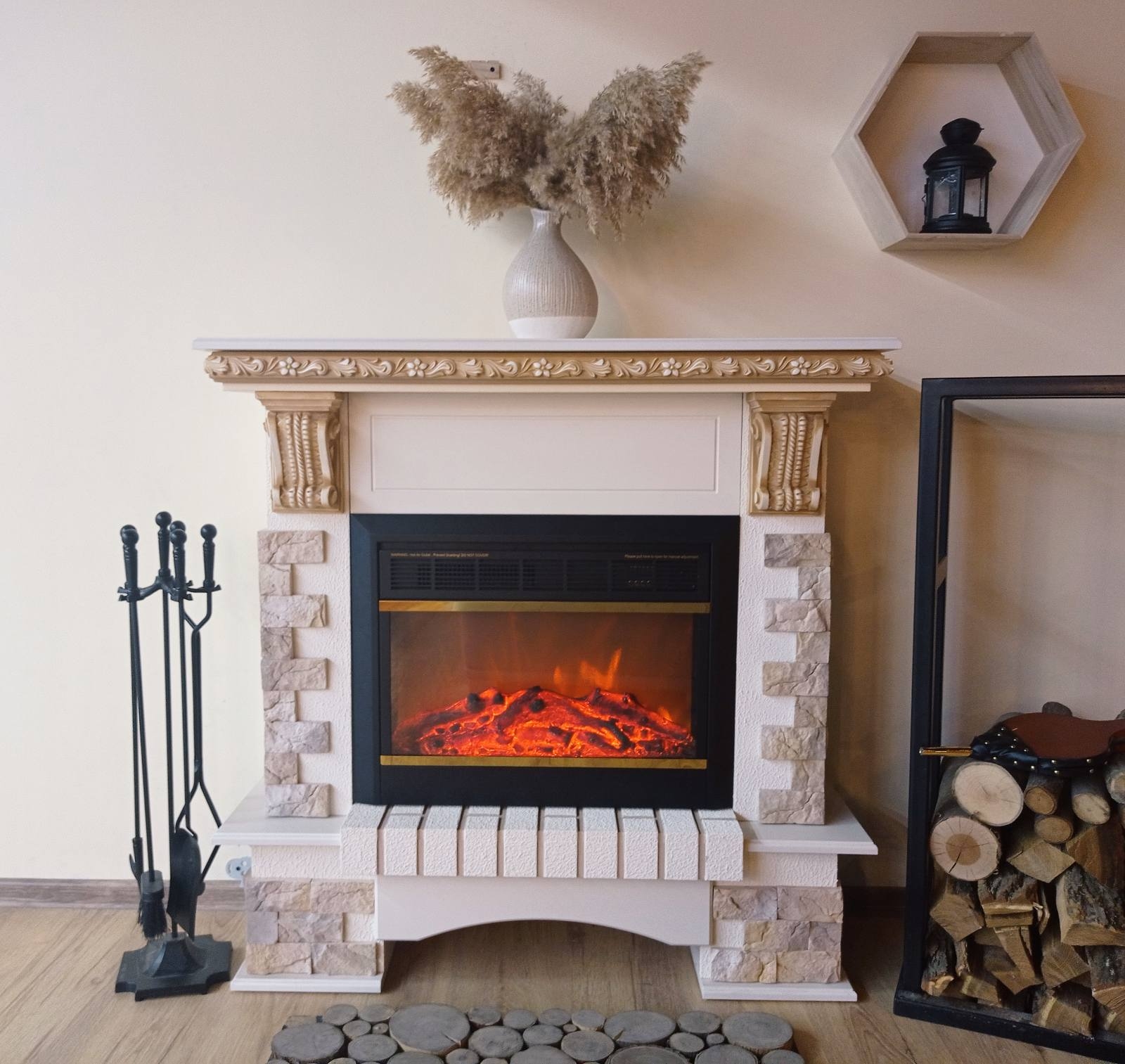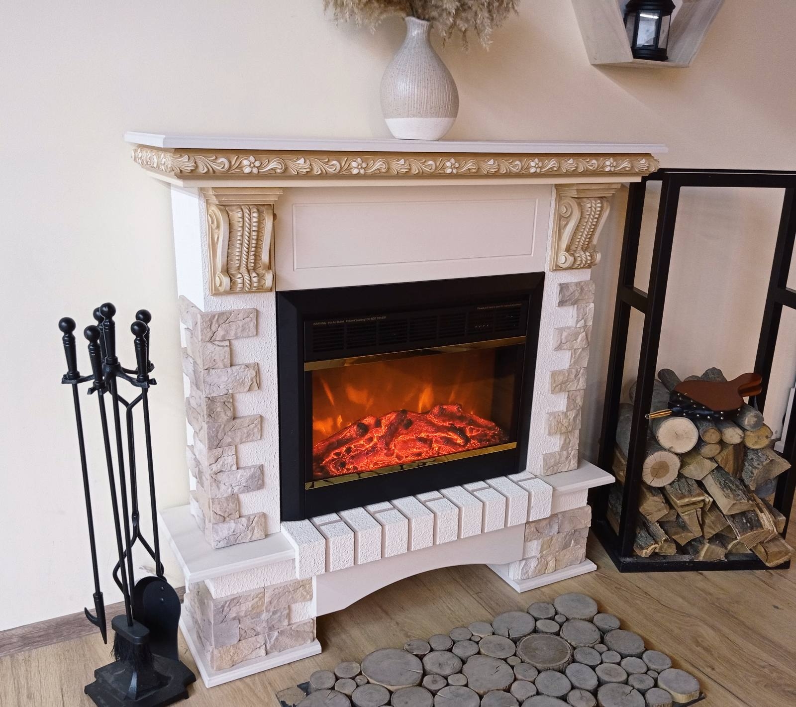 Topaz fireplace is made of high quality MDF with a unique structure, which reproduces the shape of natural wood. Fireplace sets do not require special installation skills, as they are delivered assembled and ready for use. Due to the unique design, the Topaz & Vlad fireplace, it will fit great in a house or apartment. The Topaz portal combines classic and modern styles perfectly. It is made on the color of jasmine with artificial stone on columns. The high quality imitation of the flame of the Vlad will give a feeling of relaxation. The functionality of this model allows you to use the flame separately from the heating mode, so you can enjoy it in the hot season as well.